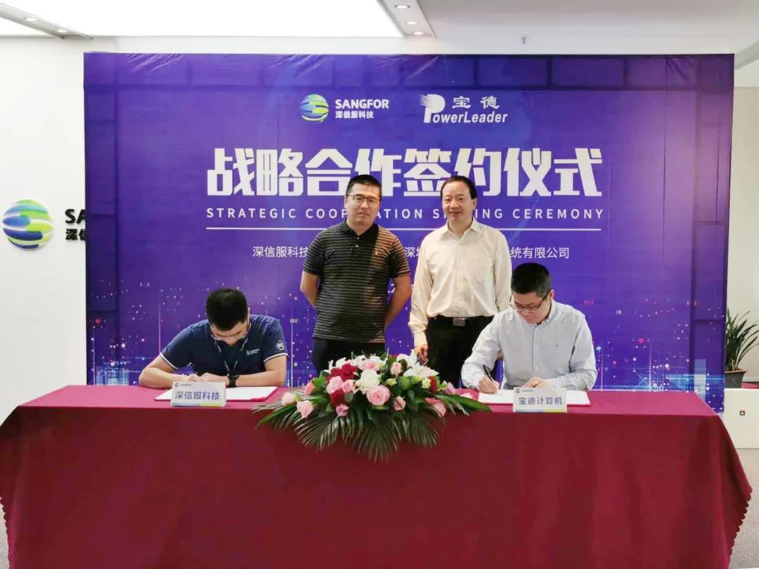 10月26日,寶德&深信服戰(zhàn)略合作簽約儀式在深圳市南山智園A1棟8樓展廳舉行。寶德計算機(jī)系統(tǒng)有限公司總裁馬竹茂、寶德計算機(jī)系統(tǒng)有限公司副總裁黃文杰、寶德計算機(jī)系統(tǒng)有限公司深圳大區(qū)總經(jīng)理彭杰;深信服科技股份有限公司云BG總裁宋銳、深信服科技股份有限公司生態(tài)合作與投資管理部總經(jīng)理張佳、深信服科技股份有限公司云BG副總裁李新等出席簽約儀式并座談。