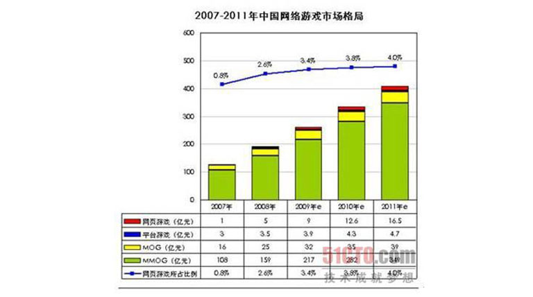 網頁游戲作為網絡游戲的一個分支,市場研究機構的數據顯示,2009年中國網頁游戲市場規模達到9.9億元,從2007年興起至今,3年時間網頁游戲市場規模就翻了近10倍,隨著網民認知程度的提高,網頁游戲的市場規模和用戶規模將進一步擴大。