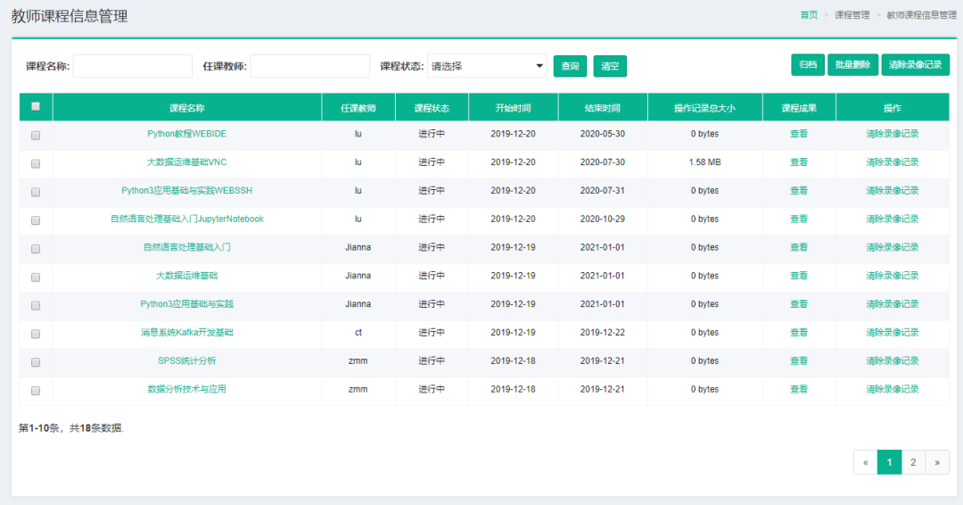教師課程信息管理界面圖