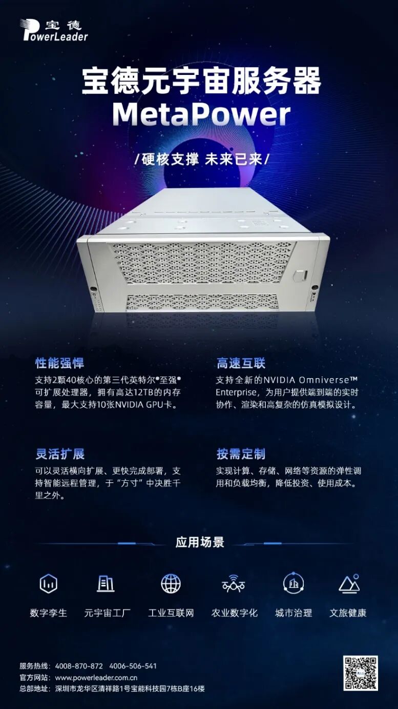 寶德元宇宙服務器MetaPower,性能強悍、高速互聯、靈活擴展和可按需定制,強力加碼元宇宙建設,力助數字人產業升級闖關!
