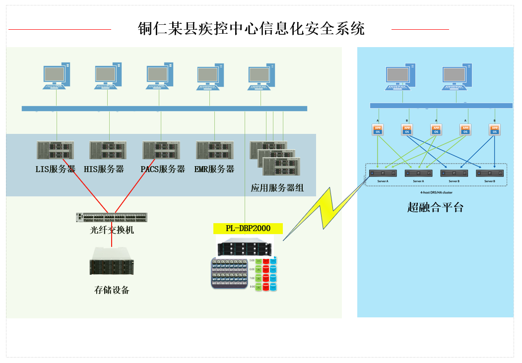 銅仁市某縣疾病預(yù)防控制中心(以下簡稱縣疾控中心)是全縣集疾病預(yù)防與控制,衛(wèi)生監(jiān)測與檢驗,健康教育與促進等公共衛(wèi)生技術(shù)服務(wù)為一體的新型機構(gòu)。該縣疾控中心積極貫徹落實上級要求,經(jīng)過多年信息化工作推進,目前已擁有HIS、LIS、PACS、EMR、門戶網(wǎng)站、實驗室信息管理系統(tǒng)、健康體檢系統(tǒng)、綜合收費管理系統(tǒng)、辦公自動化系統(tǒng)、免疫規(guī)劃等多個業(yè)務(wù)系統(tǒng)。